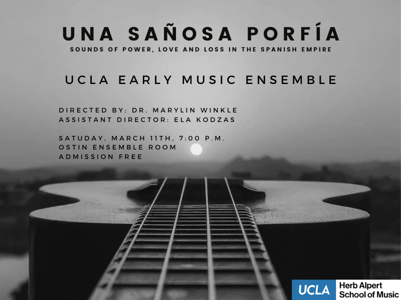 This program by the UCLA Early Music Ensemble explores music from the Spanish Empire during the Medieval, Renaissance, and Baroque eras. Our musical storytellers will depict feelings of love, loss, and power[lessness] on both inter-personal and national levels as a consequence of Spanish colonialism