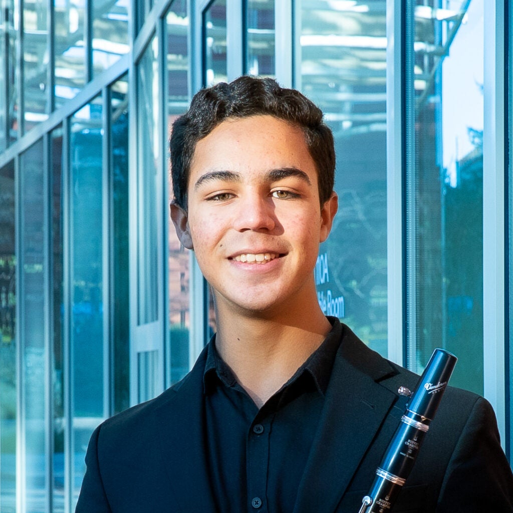 Damian Eloy Silvera, 18, born in Woodland Hills, California, is a Spanish- and Jamaican- American undergraduate clarinet performance major at the UCLA Herb Alpert School of Music, where he studies with Boris Allakhverdyan. An active orchestral, chamber, and solo musician in Southern California, Damian performs regularly with the UCLA Symphony and UCLA Wind Ensemble and is deeply engaged in both ensemble and solo performance.