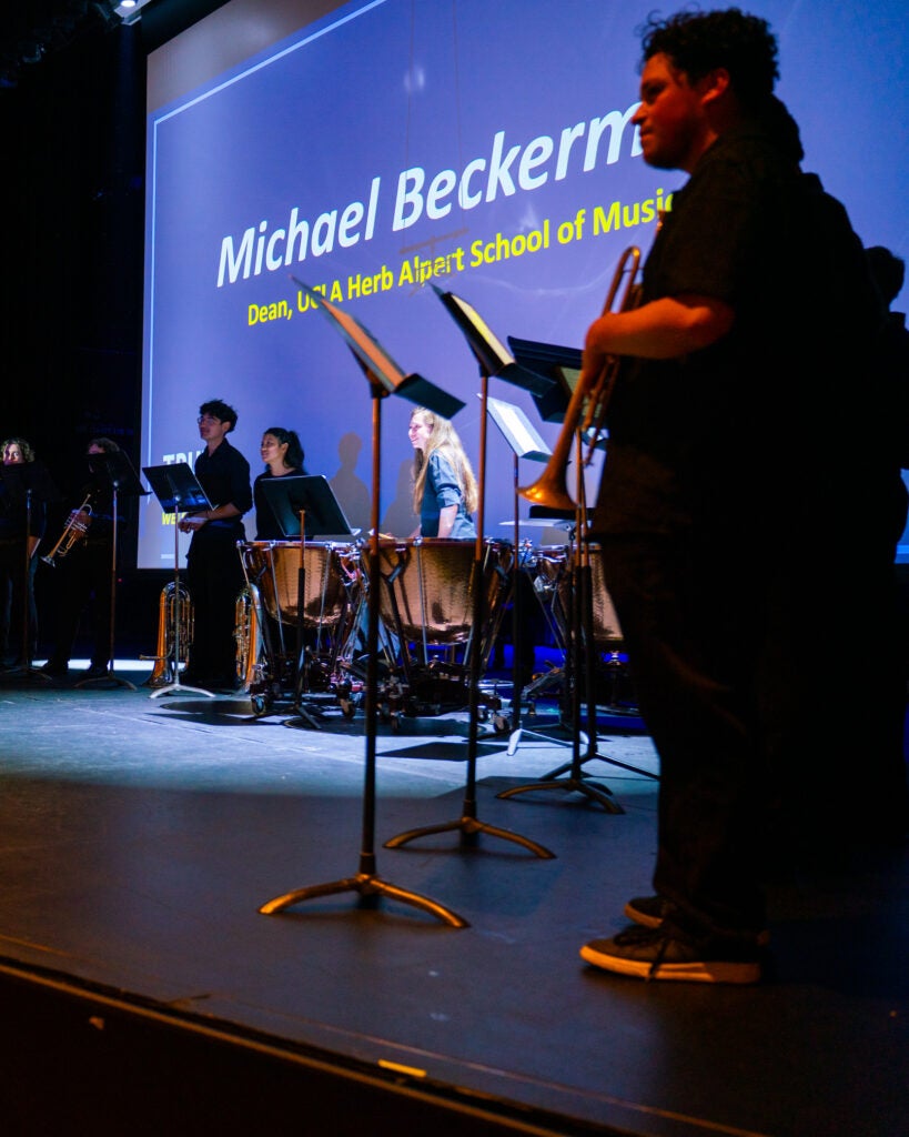 Beckerman spoke about what makes The UCLA Herb Alpert School of Music special. Was it the world-class faculty? The generous donors? The dedicated staff? The talented students? No, said Beckerman. It was no one thing. It was the entire community, united in a love of music. The idea of community resonated throughout the evening as students met in breakout sessions by academic programs and then retired to the courtyard for refreshments.