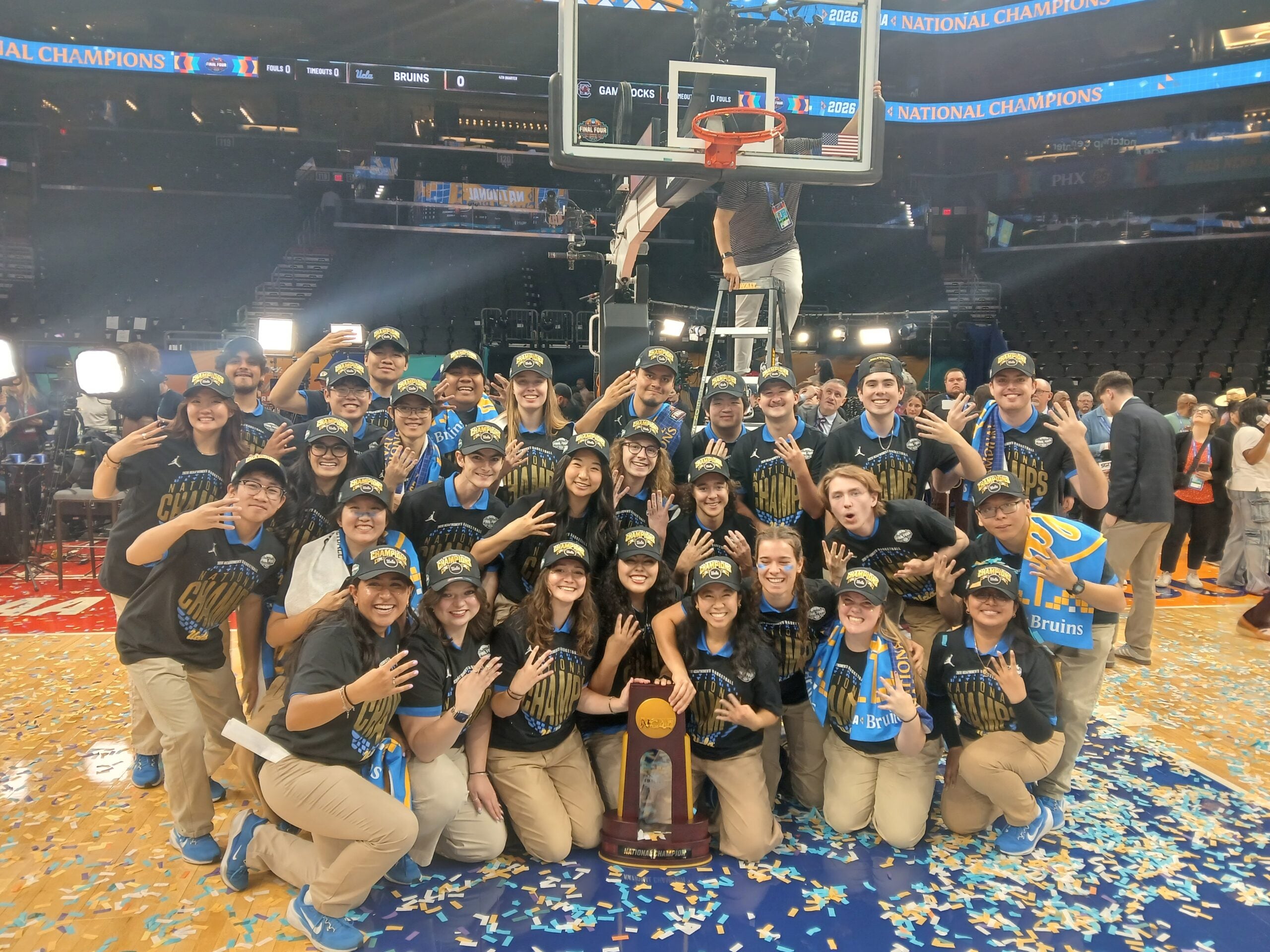 The UCLA women’s basketball team brought home the national championship after a dominant run through the season and the tournament. And from the first tip through the final trophy hoist, members of the UCLA Marching Band were there.