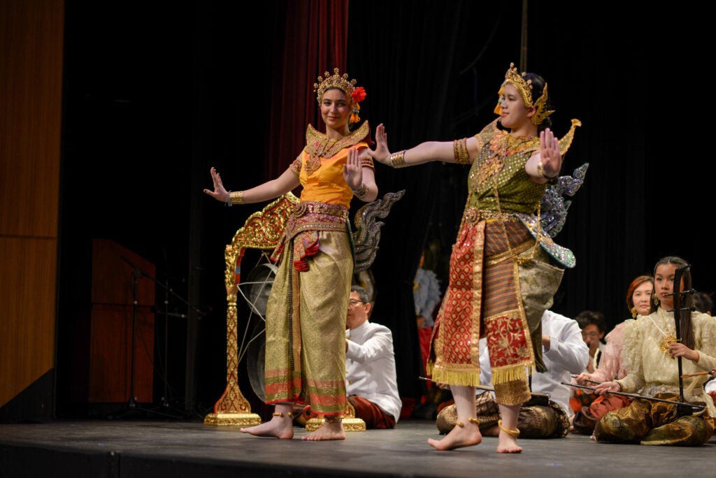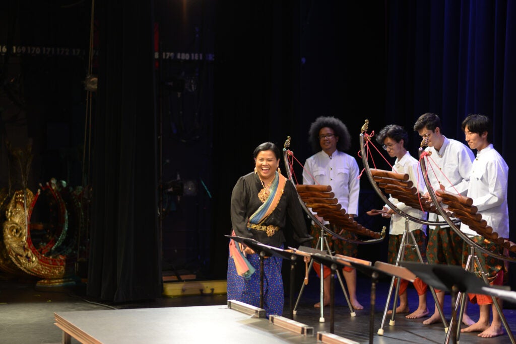 Supeena Adler: I teach the Music of Thailand Ensemble. Most students in my class have no prior experience with Thai music. In my class, I use many musical instruments from all over Thailand. I also teach students singing and dancing. I often invite local artists to share their expertise with my students during classes. We work through repertoires from simple to more difficult and complex.