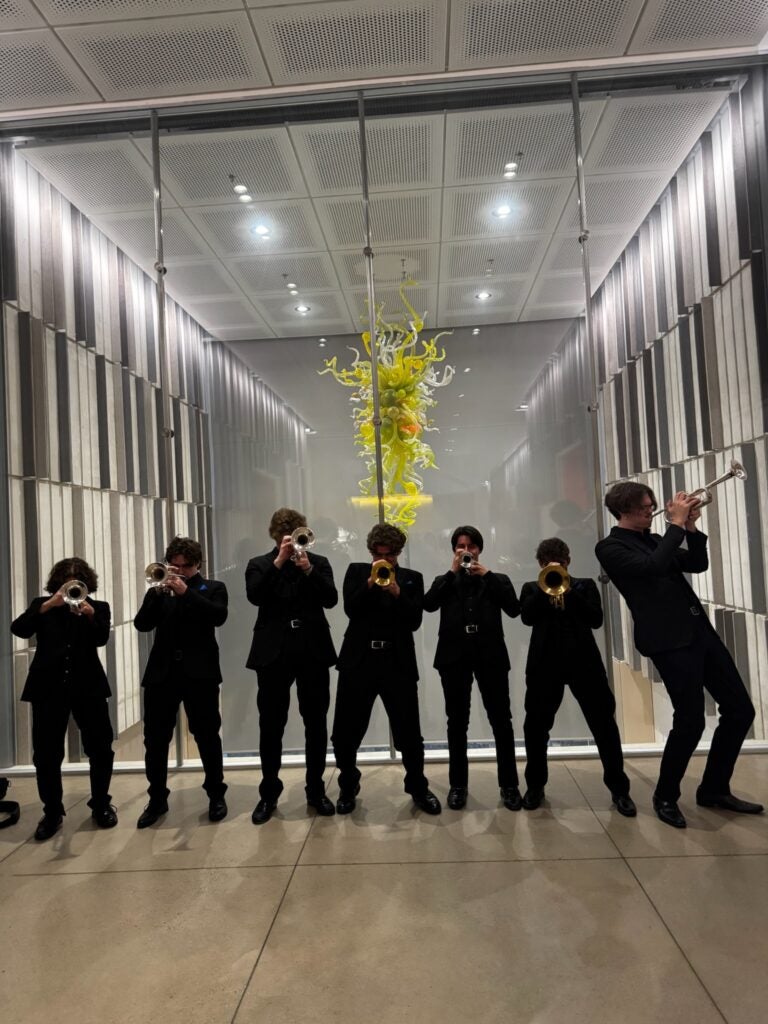The trumpet studio performed Frank Ticheli’s “Vesuvius,” arranged for ten trumpets by a member of the studio, undergraduate Jackson Bacon.