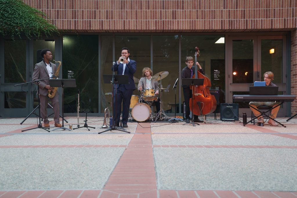“We’ve put together a demo recording in the Evelyn & Mo Ostin Recording Studio,” said Mumphrey. The state-of-the-art recording studio is available free of charge to students in the School of Music, and Mumphrey is recording his own compositions for a solo release alongside the work he is doing with his ensemble. “Our goal is to start getting regular gigs outside of Westwood in 2023, and we felt we needed a demo to do that.”