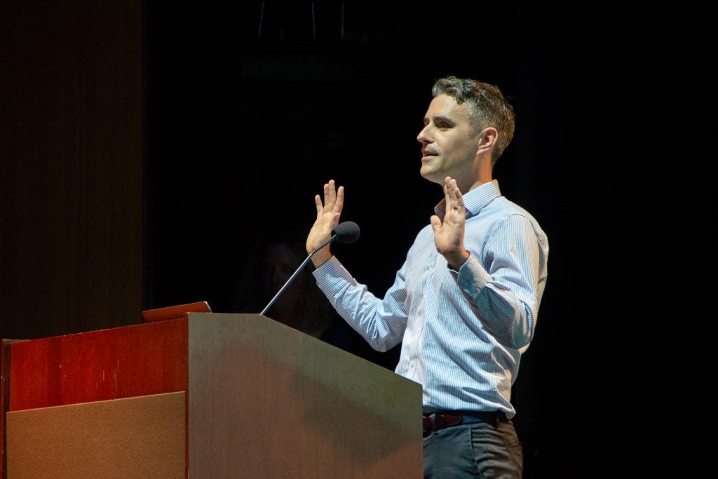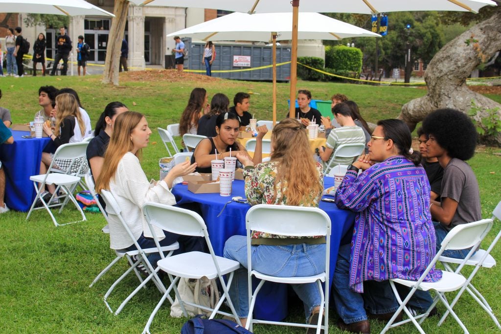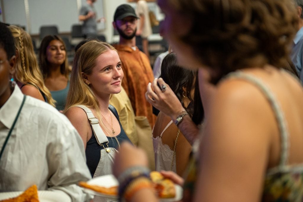 After the general welcome, students then proceeded to breakout sessions for their majors. Department chairs and faculty greeted them and talked through plans for the coming year. Then everyone retired to the courtyard to catch up over pizza.